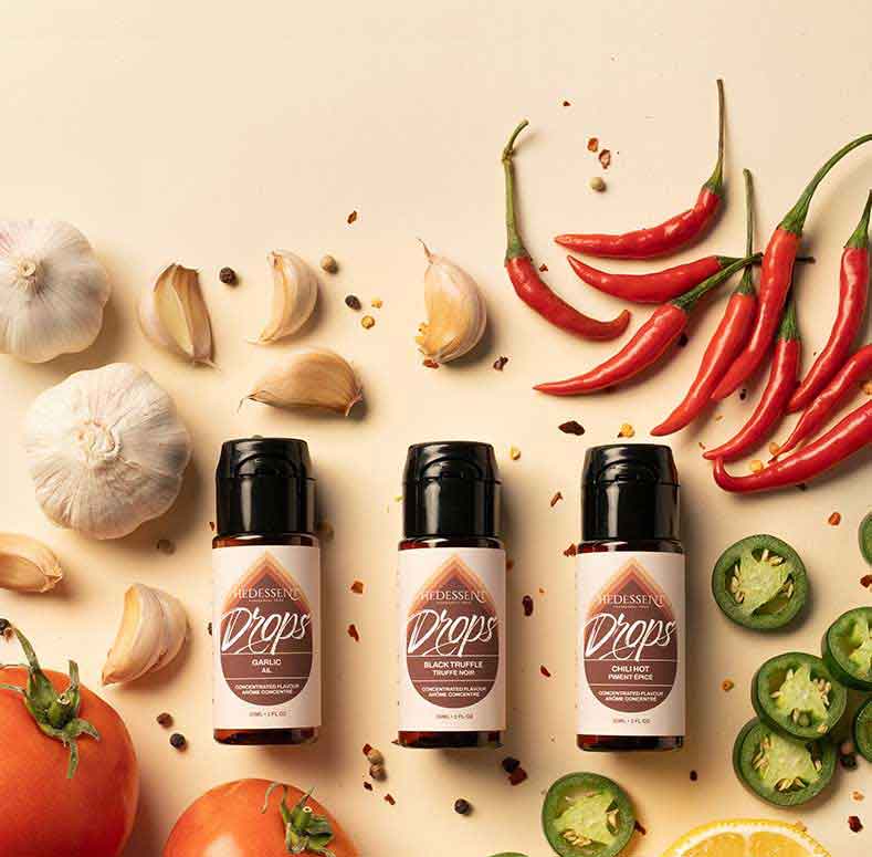 For best results, add our flavours to your recipe by mixing a few drops into your wet ingredients. For sweet dishes, whipped cream or condensed milk is a great base to start experimenting with flavour. For savory dishes, try butters and oils. We recommend 5 drops per 100g of food to start as a baseline. Taste and then sweeten or season, adjusting as desired. Flavour your beverages by simply adding a few drops right into your coffee, tea, soda, or cocktail.