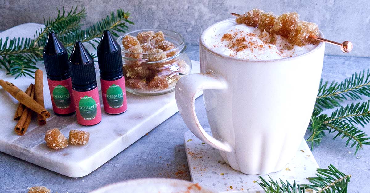 - In a small pot over medium-high heat, add milk, cane sugar, Eggnog, Gingerbread, and Cinnamon flavourings. Whisk continuously until milk is hot and frothy, about 5 minutes.